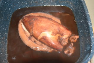 これを水400mL、醤油大匙3、みりん大匙3、酒大匙2杯を入れた鍋で約1時間煮る。