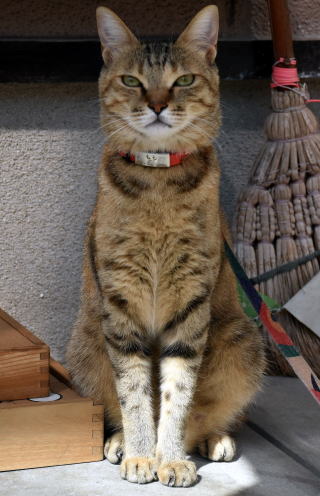 猫を番犬のように外に繋いでみると