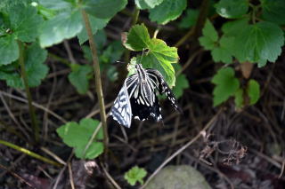 それが数日前、セミではなくアゲハチョウが地面にいるのを見つけた。両羽根が中間部分から湾曲している。脱皮が終わって今から羽根が正常な形に展開するのかと思って見守っていたが羽根は展開しない。地面に放置しておくと直ぐにアリや虫が来て食べられる可能性があるので庭の草の上に移して様子を見ることにした。
